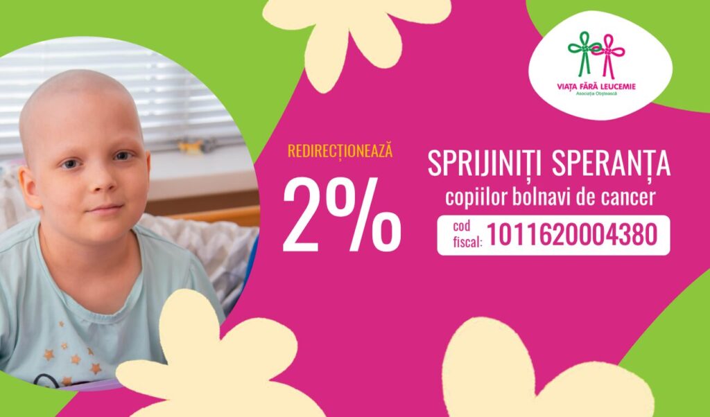 Redirecționarea a 2% din impozitul pe venit datorat statului este un mecanism prin care persoanele fizice pot ajuta organizațiile neguvernamentale în scopul susținerii activităților desfășurate de acestea. Alocând 2% din impozitul pe venit către Asociația Obștească „Viața Fără Leucemie” susțineți copiii diagnosticați cu cancer care se tratează în cadrul Institutului Oncologic din Republica Moldova